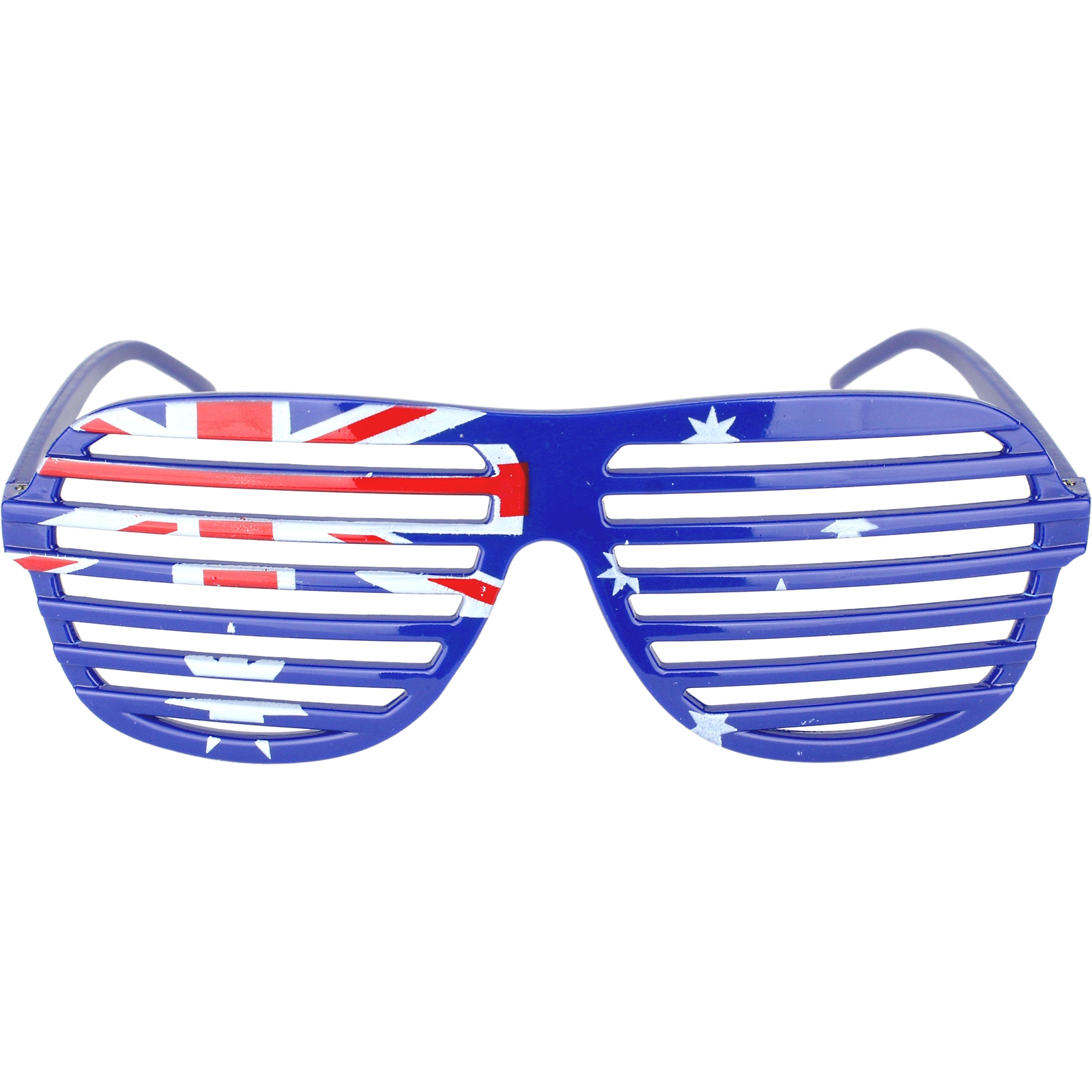 Australian-themed plastic shutter shade glasses perfect for showing some Aussie pride at an Australian themed party or sporting event!